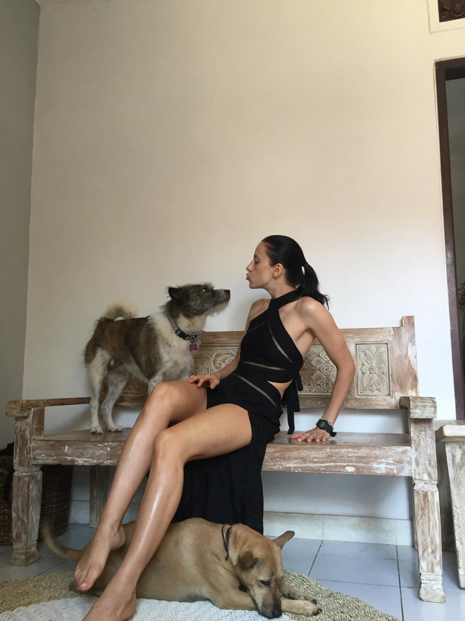 Indulge in luxury with the Pandora long dress. Featuring a tie top, elegant split bottom, and a daring open back, this one size fits all dress is perfect for any occasion.