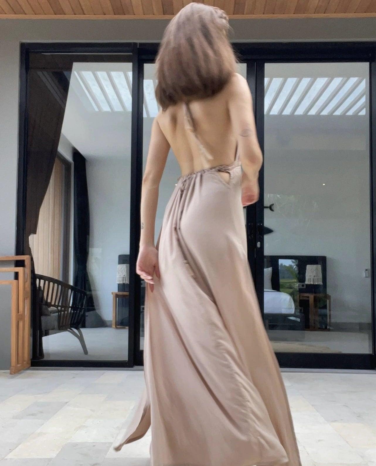 Step into the world of luxury with our Pyramid dress. Designed with a deep V tie top and side splits, this dress is both elegant and versatile. The one size fits all elastic waist ensures a perfect fit every time.